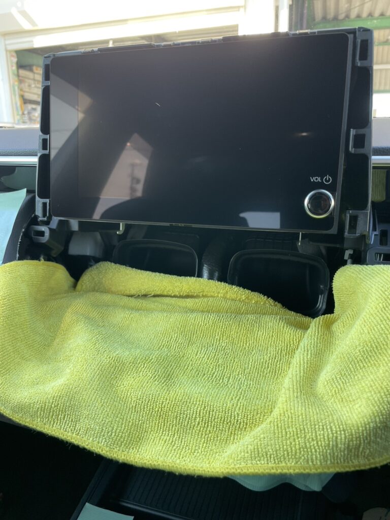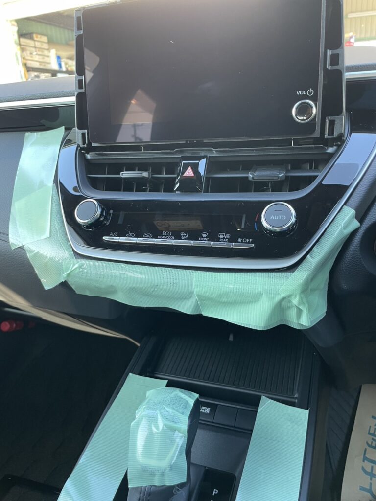 写真の様に、ダッシュパネルに傷がつかないように養生する事をオススメします。